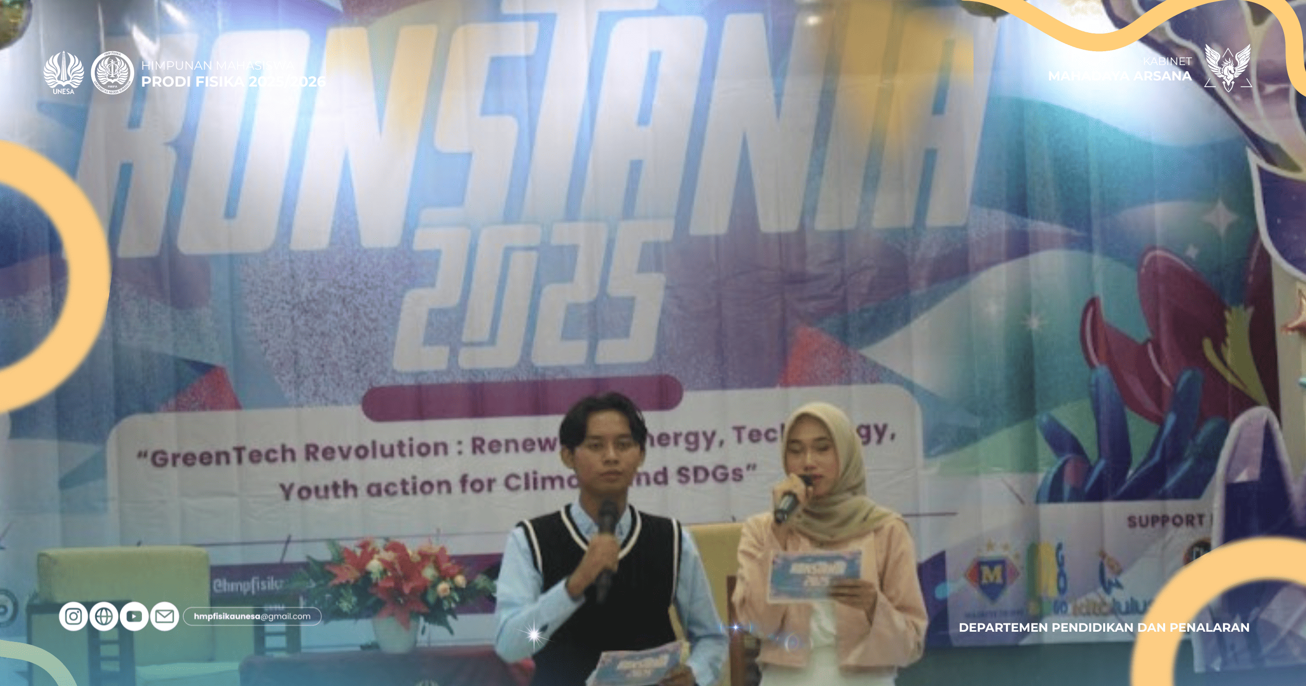 KONSTANTA (Kompetisi Essay dan Karya Tulis Ilmiah Tingkat Nasional) 2025 merupakan salah satu program kerja unggulan yang diselenggarakan oleh Himpunan Mahasiswa Prodi Fisika dan Himpunan Mahasiswa Prodi Pendidikan Fisika Universitas Negeri Surabaya. Kegiatan ini hadir sebagai wadah pengembangan sikap ilmiah, kreativitas, inovasi, dan kemampuan literasi akademik bagi siswa SMA/sederajat serta mahasiswa dari berbagai perguruan tinggi di seluruh Indonesia. Pada pelaksanaannya di tahun 2025, KONSTANTA mengusung tema besar “GreenTech Revolution: Renewable Energy, Technology, Youth Action for Climate and SDGs.” Tema ini dipilih sebagai bentuk respon terhadap isu global perubahan iklim, energi terbarukan, dan tantangan pembangunan berkelanjutan. Melalui kegiatan ini, mahasiswa dan pelajar didorong untuk melahirkan gagasan dan karya tulis ilmiah yang solutif, inovatif, serta relevan dengan kebutuhan masa depan menuju Indonesia Emas 2045.