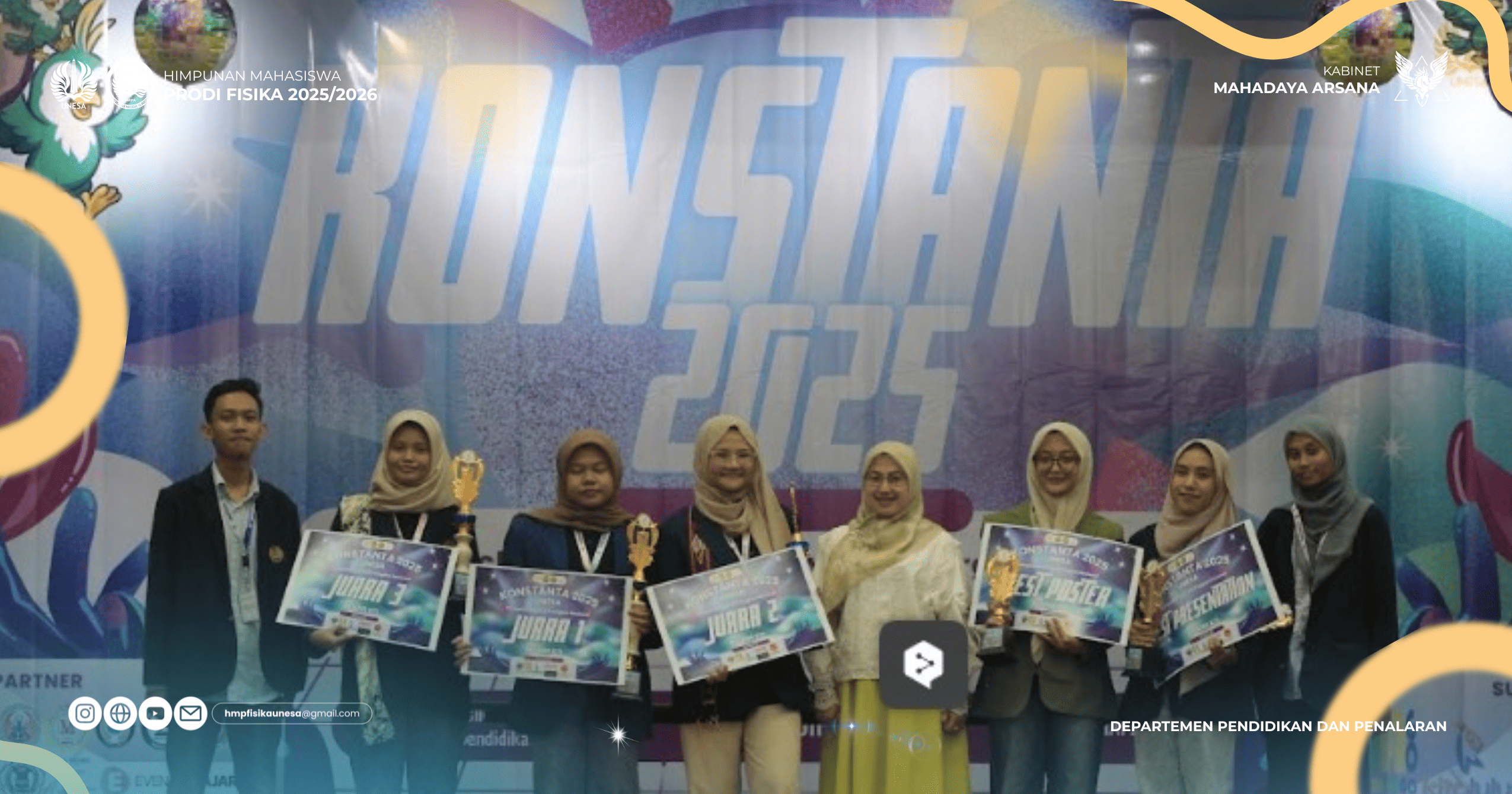 KONSTANTA 2025 tidak hanya berperan sebagai ajang kompetisi, tetapi juga sebagai sarana pendidikan karakter ilmiah, komunikasi akademik, dan jejaring nasional antarpelajar serta mahasiswa. Melalui kegiatan ini, peserta diharapkan dapat meningkatkan kemampuan berpikir kritis, penelitian ilmiah, publikasi karya, serta pemahaman terhadap peran sains dalam pembangunan bangsa. Pelaksanaan kegiatan ini juga memperkuat hubungan antara civitas akademika FMIPA Unesa dengan sekolah dan perguruan tinggi di Indonesia. Kehadiran kompetisi ini menegaskan komitmen Himpunan Mahasiswa Prodi Fisika dan Himpunan Mahasiswa Prodi Pendidikan Fisika Unesa turut serta mencetak generasi ilmuwan, inovator, dan pemimpin masa depan yang berkarakter, berwawasan luas, serta memiliki kesadaran terhadap isu lingkungan global.